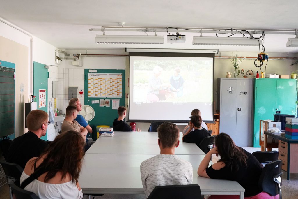 „Guten Morgen, kommt bitte alle nach vorne und sucht euch einen Platz“, fordert Gruppenleiter Christian Jaria seine stark geschrumpfte Klasse auf. Wo üblicherweise 20 bis 30 Teilnehmerinnen und Teilnehmer zusammenkommen, versammeln sich acht Jugendliche vor einer Leinwand. Viele seiner Schützlinge sind entweder im Urlaub oder gerade im Praktikum. Für den verbliebenen Rest von ihnen startet die Wiederholung. Was hatten sie gestern gelernt? Was hatten die Menschen in dem Lehrvideo erzählt? Nur mit Mühe kann Herr Jaria einige Erinnerungsfetzen wach kitzeln. Er startet das Video erneut. In der kleinen Reportage stellen zwei Expertinnen zwei Kräuter vor: Salbei und Thymian. Wie sehen die Kräuter aus, wie schmecken sie, wie duften sie? Welche Lebensräume benötigen die Pflanzen und auf welche Weise kann man sie verwenden?
